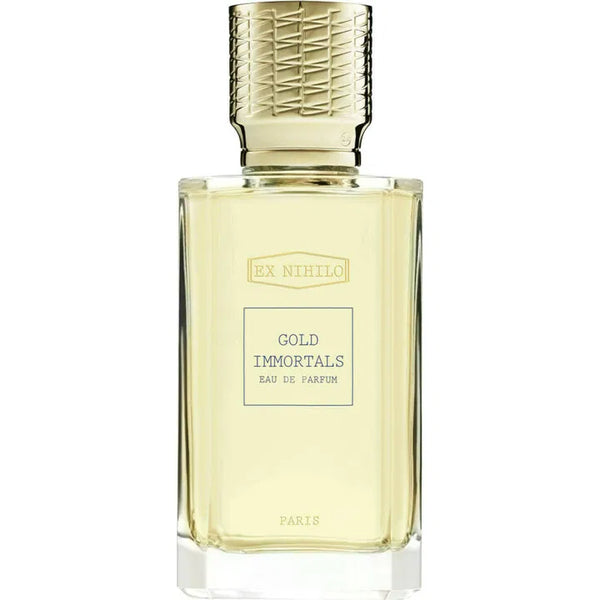 Gold Immortals fra Ex Nihilo er en luksuriøs unisex parfyme som blander frisk frukt og blomster med varm amber‑ og muskbase. Duften starter med pear (pære) og bergamot, som gir et lyst og friskt førsteinntrykk, går over i lyslang/peony‑blomster, og lander i en varm, sensuell base av amber, musk og tonkabønne som gir god varighet og en elegant karakter.