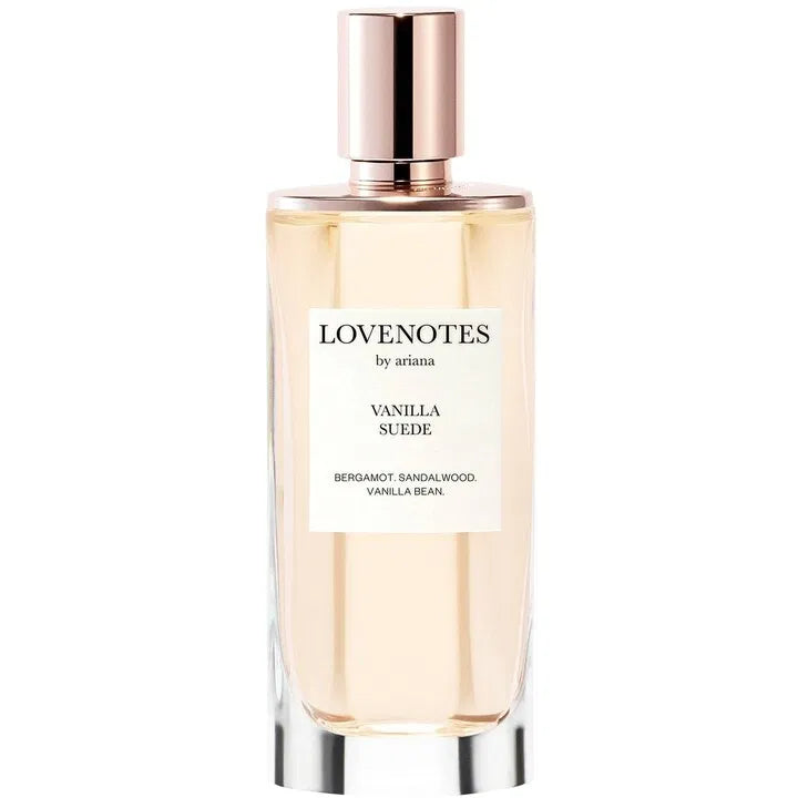 Ariana Grande Lovenotes Vanilla Suede er den nyeste og siste duften i Lovenotes-serien. Den kombinerer varme og myke noter av vanilje og semsket skinn, som gir en elegant, sensuell og sofistikert avslutning på den populære parfymekolleksjonen.